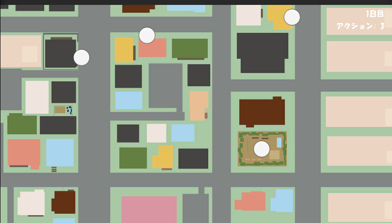 そこから街を移動しようとしたが,移動方法がわからなかった.説明書によると,マウスクリックだけで操作するとのことだったので色々なクリック法を試したが,自らは見つけることができなかった.そこから7日目がやってくるのを待つのは,長〜〜〜い時間を要した.7日目を待とうとしたが,3日で断念した.もしかしたら,4日目は永遠にやってこない?