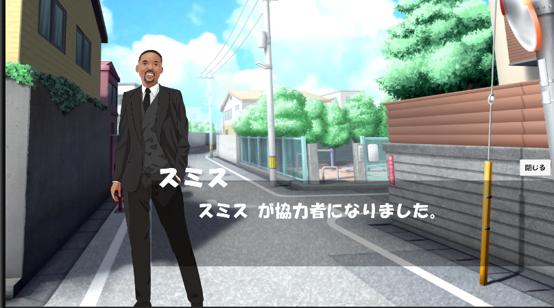 選択した場所でイベントが発生。クリック操作で会話を進め、個人の状況や情報を取得する。 -