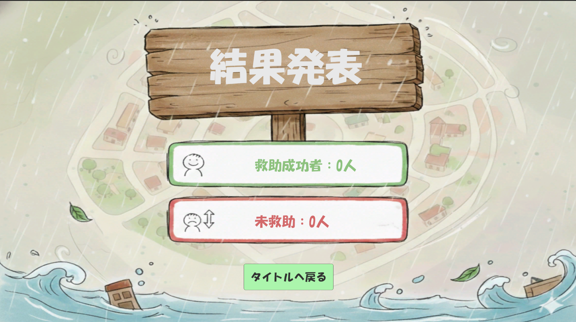 7日後に災害が発生。構築した共助関係の結果として、住民の安否と救助成功率が表示される。
