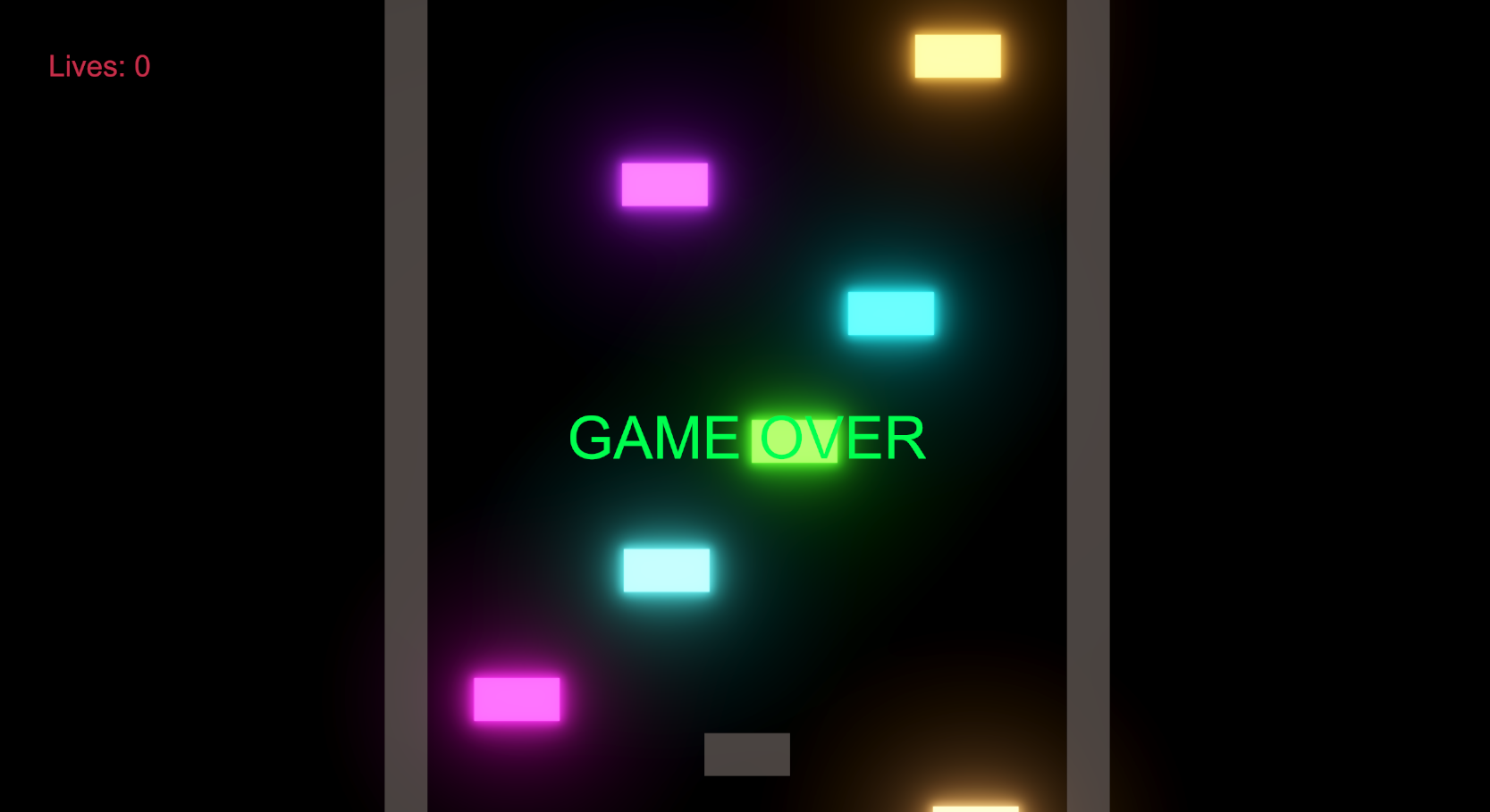 迫ってくるブロックが、プレイヤーにあたってしまうと残機が減ります。 - 残機が0になると GAME OVER です。